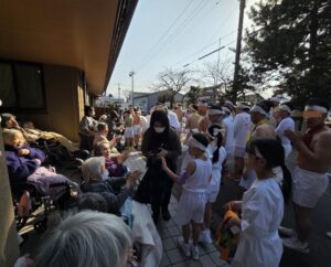 たぶのき前にも白山神社があるので、たくさんの入居者と一緒に玄関先で応援をしました。