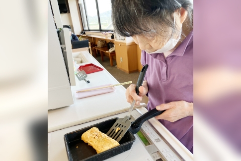 旬の食材を使ったメニューや行事食の提供をしています。希望に応じて利用者様も一緒に調理や盛り付け、片付けなどを行い、暮らしの中で"役割"を持てるように支援しています。